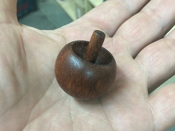 Hace unos días, estuvimos torneando con mi estimado Pablo Vallejos. Realizamos una revisión del divertido tippe top (un tipo popular de trompo). Es increíble cómo, en la práctica, se van descubriendo detalles importantes que se suman a los datos ya conocidos. Este curioso objeto consta de un vaciado donde se aloja su vástago (el cual se puede tornear aparte). El equilibrio y la forma esférica son vitales para que, al rotar el objeto, se invierta y termine girando sobre su eje y su vástago.