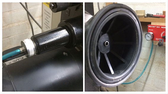 Este accesorio consta de una bomba de vacío y un plato de succión, y se utiliza principalmente en la etapa final de la creación de cuencos. La pieza se mantiene en su lugar gracias a la succión generada por la bomba, lo que resulta especialmente útil para dar acabado al pie de los cuencos y otros elementos que han sido ahuecados.