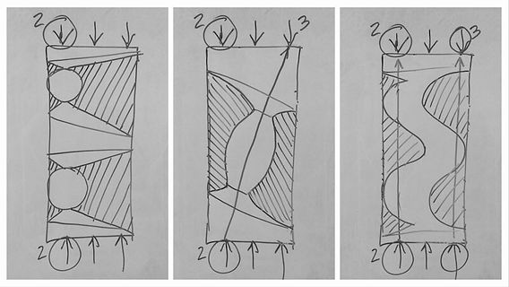 (Imagen arriba) Tomando los puntos dispuestos alineados, diagonalmente o fuera del eje hacia el eje principal, posee varias opciones y resultados interesantes.