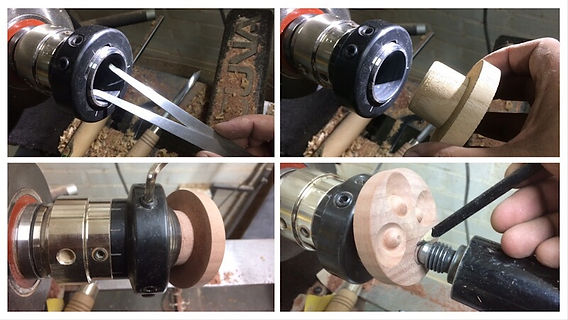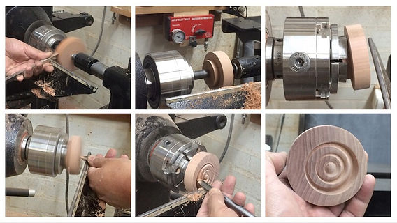 Existen platos de sujeción diseñados específicamente para esta técnica, así como sistemas excéntricos completos. Sin embargo, aquí nos centraremos en dos en particular: un plato de garras convencional y un plato excéntrico. Además, exploraremos el resultado obtenido con un tercer tipo de plato de madera fabricado en el torno (este accesorio se verá con más detalle más adelante).