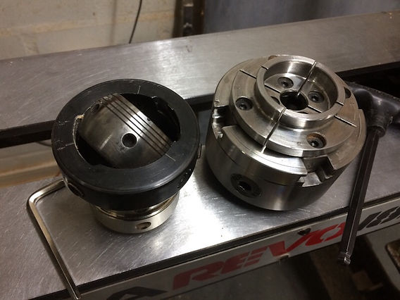 Arriba (segunda foto), se presenta un ejemplo simple de un ejercicio realizado con estos accesorios: una pieza circular con un inserto fuera de centro, todo fabricado en el torno.