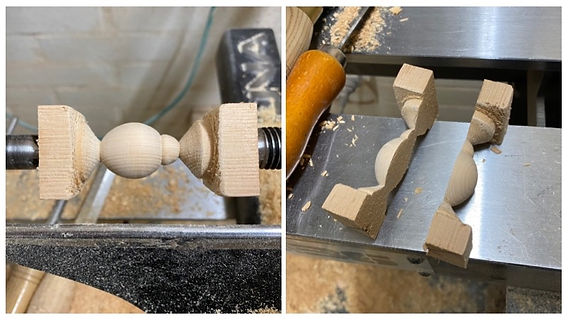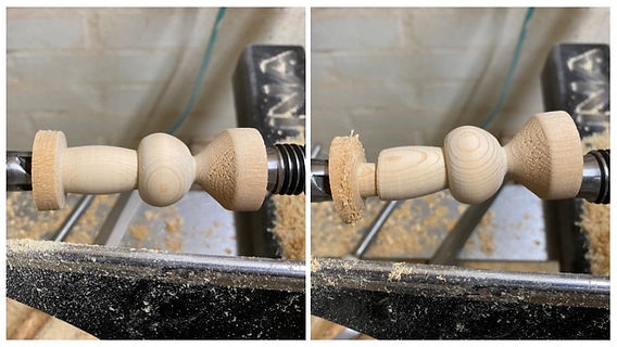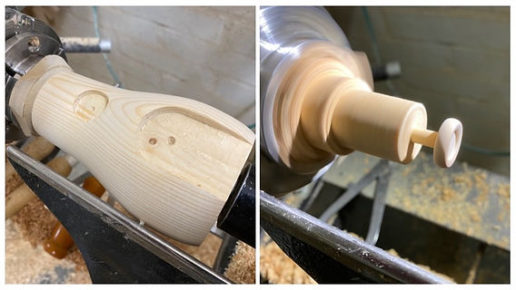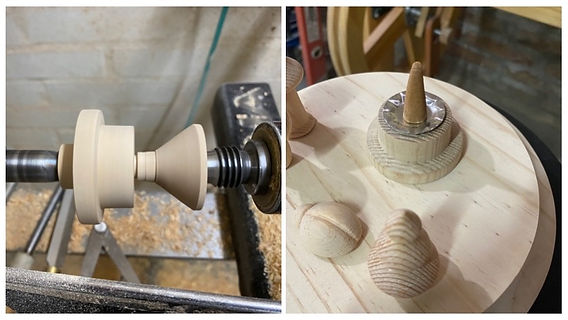 Imagen superior: El porta incienso, torneado en una madera más densa, con una espiga de 22 mm y encolada posteriormente a la base.