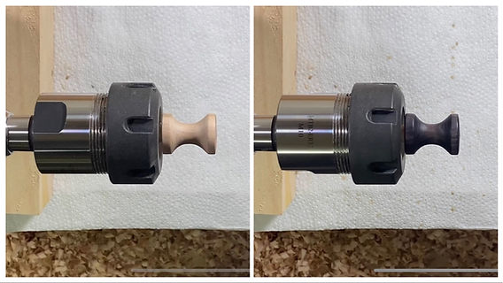 El proceso de ebonizado requiere un tiempo de secado entre capas, y con la ayuda de la alta velocidad del torno, este proceso se puede completar en pocos minutos.