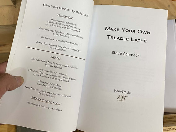 Tenía algunos libros, como «Wood Turning on the Foot», y varios PDF que apenas revisé, en parte debido al tamaño de algunas máquinas que parecían monstruosas, y también a mi preferencia por los libros impresos. En 2017, adquirí el libro de Steve Schmeck, aunque es tan breve que más bien lo describiría como «una guía». Sin embargo, este último es muy fácil de seguir debido a su enfoque no purista y su disposición a utilizar tornillos. Cualquier persona, incluso sin experiencia en carpintería como yo, podría construir un torno a pedal siguiendo sus instrucciones. Puedes encontrarlo tanto en formato físico como en digital.