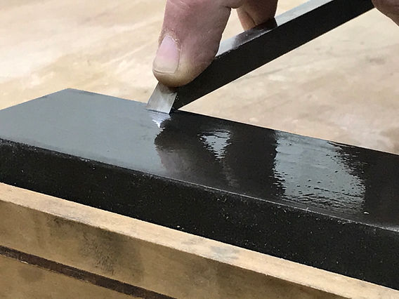 Es importante pulir las caras de la barra para evitar dañar el apoya herramientas del torno. Para el afilado, utiliza piedras de aceite y genera un micro bisel en la parte superior que se pueda mantener con rapidez y facilidad. En la tornería, un afilado rápido y duradero es esencial debido al desgaste y al trabajo al que son sometidas las herramientas.