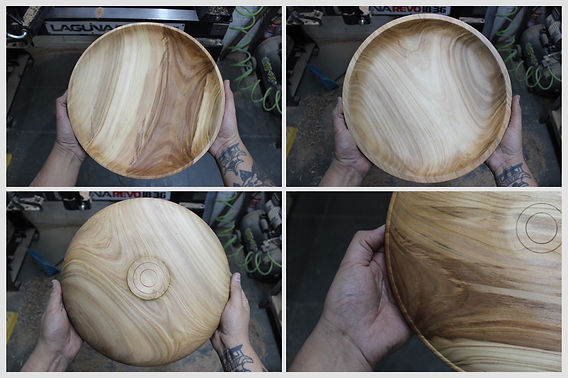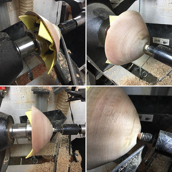 Posteriormente a este proceso, montamos normalmente en el plato de garras y rectificamos el borde y el vaciado. Después de lijar con la configuración de abrasivos que utilicemos (por ejemplo, 80, 120, 180, 230), aplicamos el acabado elegido.