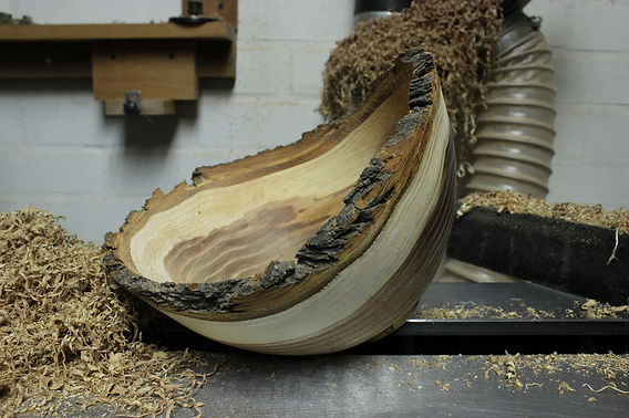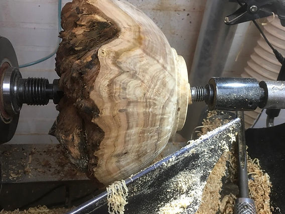 Aunque es posible montar el tronco completo en el torno, esto es más común al trabajar con formas huecas o cuencos con bordes naturales de corteza.