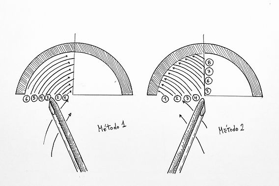 Un Segundo Método y muy utilizado consiste en realizar cortes escalonados desde la zona del borde, de un punto cercano al centro hacia afuera (derecha a izquierda) y hacia el interior, acercándonos con cada corte al centro y creando un vaciado escalonado. Posteriormente, se avanza hacia el centro y se completa el vaciado escalonado, seguido por un corte tradicional desde el borde hacia el centro.