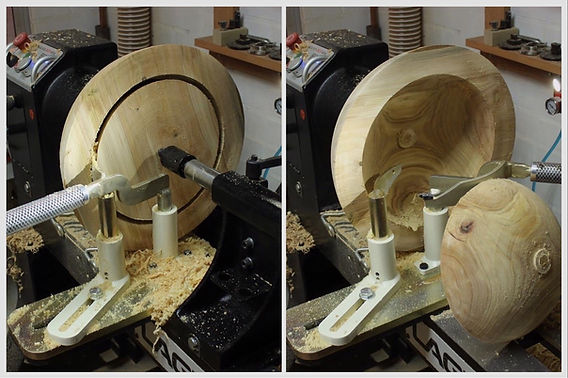 Con su sistema de cuchillas afiladas, cortan un camino similar al de una cuchara para helados, eliminando el centro o núcleo y obteniendo dos cuencos en pocos minutos. Este versátil accesorio puede extraer tantos núcleos y cuencos como permita el tamaño de la madera y la configuración del sistema.