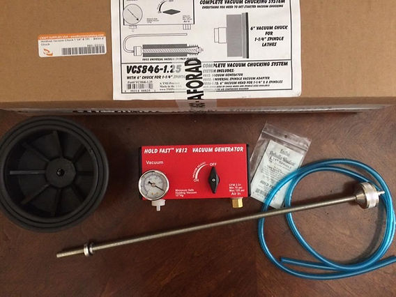 Al utilizar durante un tiempo el Cole Jaws Chuck, fabricarlos artesanalmente y emplear diversos Donut Chucks, no puedo dejar de mencionar quizás el mejor de todos: el Vacuum Chuck. Hay dos tipos principales: el Vacuum Chuck que funciona mediante una bomba de vacío y el Vacuum Chuck que yo utilizo, un sistema de generación de vacío (Vacuum Generator) en el cual, mediante un compresor, generamos succión. Ambos sistemas cuentan con un plato de goma que, a través de la succión, sujeta desde el vaciado del cuenco.