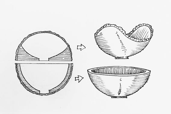 Una manera simple de conceptualizar el trabajo en un cuenco es visualizar que al dividir un tronco por la mitad verticalmente, obtenemos dos mitades que se transformarán en dos cuencos. Es fundamental destacar la eliminación del corazón o médula del tronco (a unas pulgadas desde donde nacen los anillos) debido a que esta área es propensa a rajaduras y podría ocasionar la ruptura del tronco.